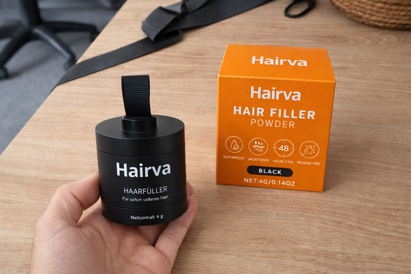 Die Bürste von Hairva™ Haarfüller bringt die Fasern gezielt dorthin, wo sie hingehören – für eine saubere, natürlich wirkende Abdeckung, die zuverlässig hält.